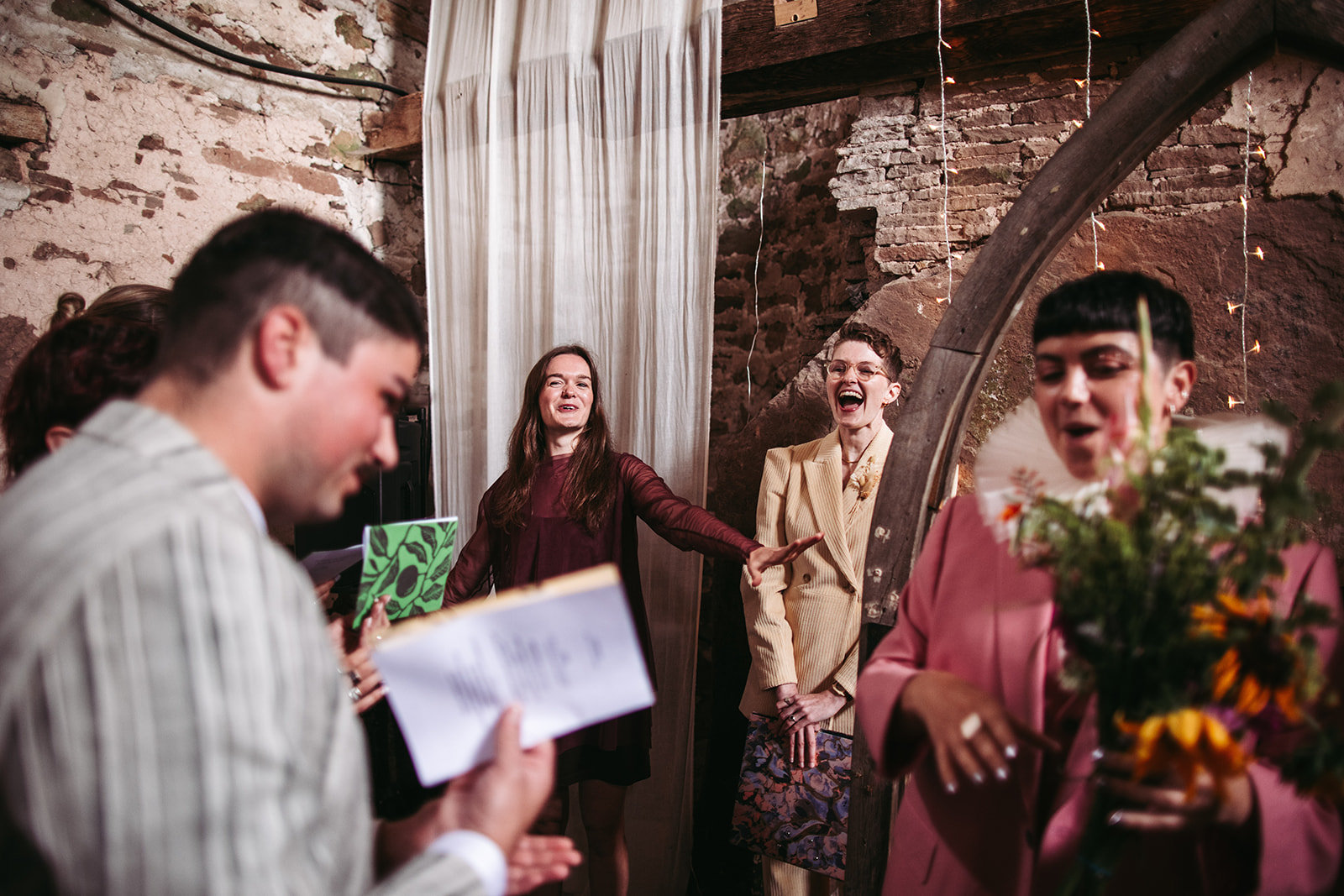 With a ceremony led by me, I'll get in touch with a few fave folks so they can share memories, stories, in-jokes and reflections about you, which I'll weave into proceedings. This is such a gorgeous part of the process - so many people in the room get a special mention and shout-out - and your ceremony feels truly crowdsourced, like one big collective hug.